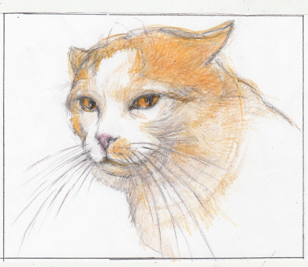 TĂȘte de chat orange - esquisse